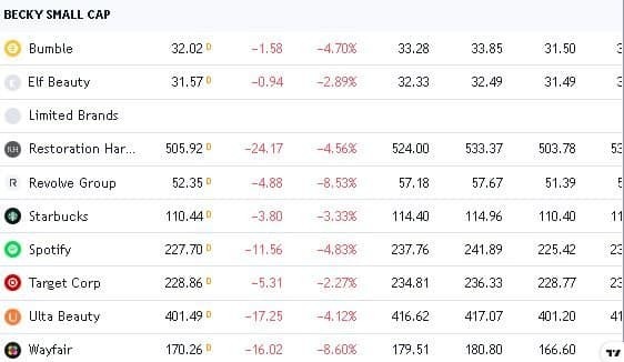 어도비에, 애플, 페이스북, 룰루레몬 등등 우리 곁에서 자주 볼 수 있는 주식들이야. 그 아래 스몰캡은 스타벅스를 빼면 잘 모르는 회사지만 여성들 사이에선 나름 인지도가 있으니 넣은 게 아닐까 싶어.
